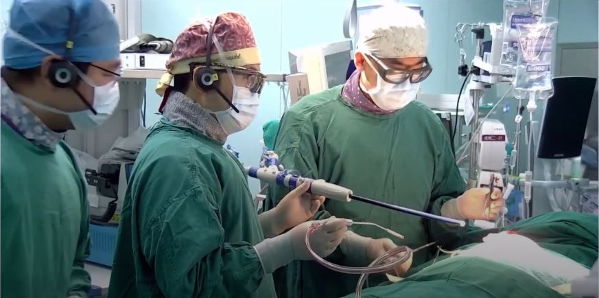 图1.潘湘斌教授在进行三尖瓣LuX-Valve瓣膜植入手术