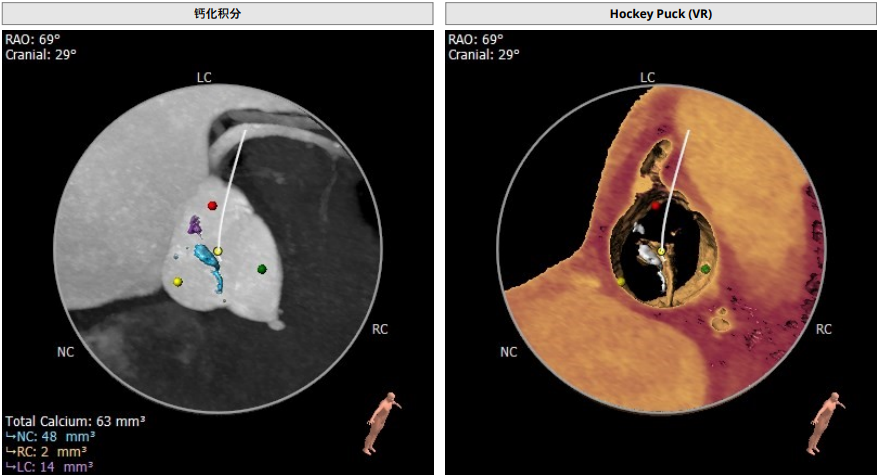 彭小平教授团队组织各兄弟科室集体对其病变进行深入分析、反复讨论后,结合患者主动脉根部情况及病情等综合因素,决定使用VenusA-Plus®可回收输送系统,选用18 mm球囊预扩张,经由右侧股动脉入路拟植入L23型号瓣膜完成此次手术。