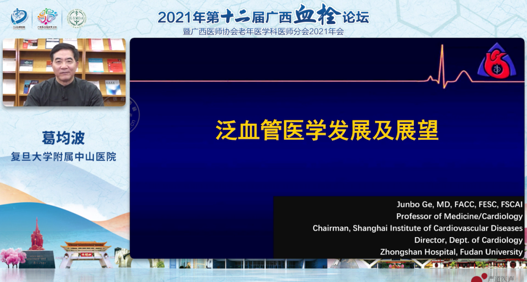 葛均波院士则强调了在泛血管医学理论指导下,血栓防治多学科协作的重要性。他指出,无论从学科发展角度,还是血栓机制角度来看,血栓性疾病都是一个多学科疾病,也是一个需要多学科合作与管理的课题。基于近年来在抗栓、抗凝等领域的探索成果,多学科之间的学习与交流有助于为患者制定出符合其临床特征的个性化的抗栓治疗方案,在降低血栓发生的同时也降低出血并发症的发生。广西血栓论坛在推动多学科合作与交流,协同抗栓,规范抗栓方面持之以恒十二年,为构筑广西血栓防治体系和提高区域血栓防治水平做出了积极贡献,期待通过本届广西血栓论坛可以让相关领域的多学科专家、医生充分地交流。大家知于行,行于道,知行合一,共同克栓。