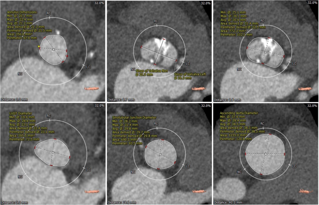 左冠瓣瓣叶长度偏长,综合瓦氏窦内径等因素考虑,左冠存在遮挡风险。 入路血管多处钙化,术中存在入路血管并发症可能。