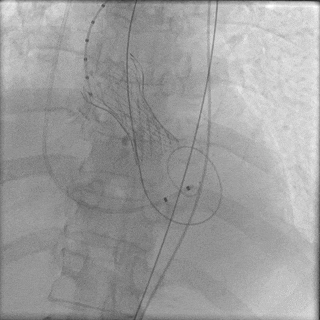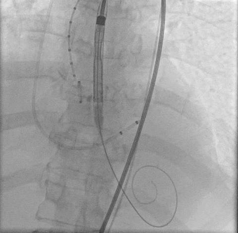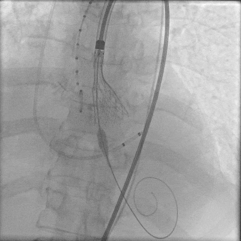 由于患者本身是Type0型二叶瓣,加上钙化较重,给瓣膜植入的位置增加了难度,术中释放多次释放部分回收后,最终释放一个比较满意的位置。