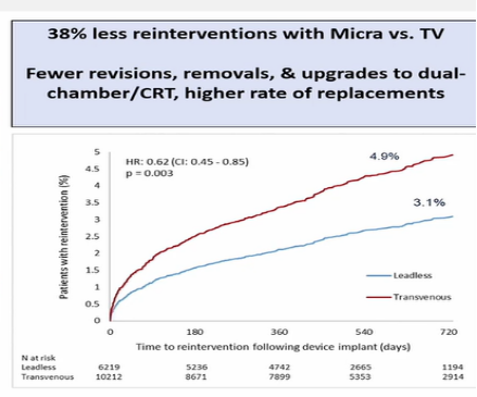 近日在2021年欧洲心脏病学会科学年会上,美国Jonathan Piccini教授发布了无导线起搏器Micra在临床正式应用后的首个中长期随访研究——Micra CED研究结果。该研究显示,2年随访期内,无导线起搏器Micra较传统起搏器降低了38%的再手术率,显示了其较传统起搏器的明显优势。