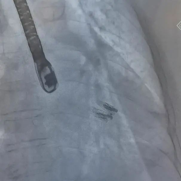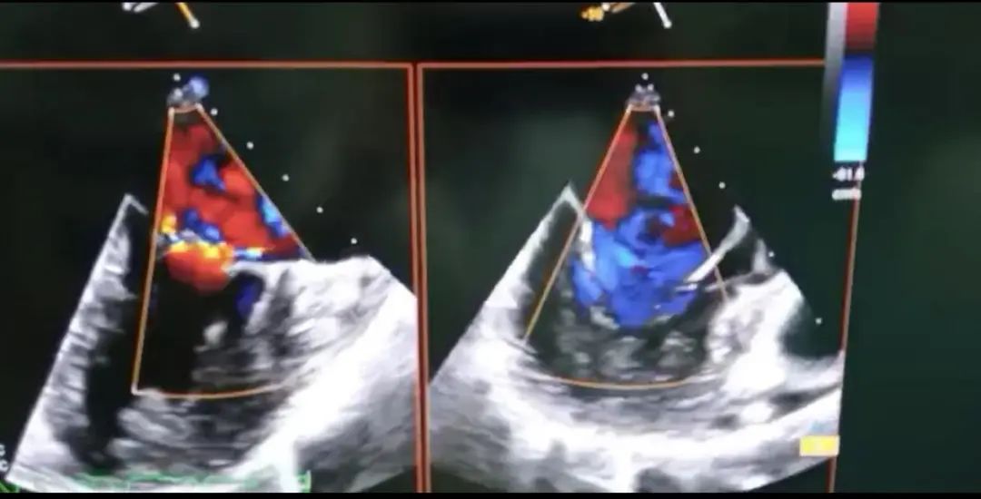 手术过程:4位患者在麻醉科团队保驾护航下,器械经股静脉穿刺房间隔,通过输送系统送入左心房,到达二尖瓣膜反流处,在经食道超声心动图及DSA引导下,术者通过反复评估二尖瓣膜脱垂范围、抓捕位置、返流程度,精准夹合,成功植入DragonFly瓣膜夹(其中3位患者各植入1枚,1位患者植入2枚瓣膜夹)。术后即刻患者返流显著减小、左房压下降,肺静脉逆流减轻,血流动力学改善明显。术后第1天即可自主下床活动,气促等心衰症状较前明显改善。