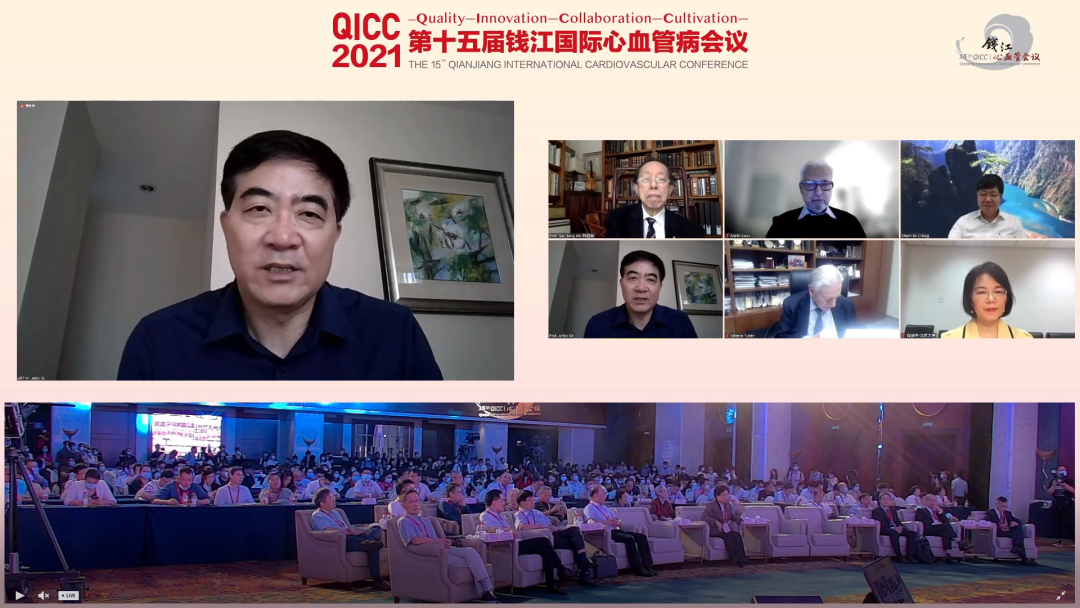 开幕式上群贤毕至,大会主席、浙江大学医学院附属第二医院王建安教授担任开幕式主持人。中华医学会心血管病学分会主任委员韩雅玲院士,浙江省卫生健康委员会副主任俞新乐先生,浙江大学副校长周天华教授,浙江省医学会驻会副会长陆新成先生,首都医科大学北京朝阳医院杨新春教授等嘉宾亲临现场。中国医师协会心血管内科医师分会会长葛均波院士、美国TCT主席Martin Leon教授,美国心脏病学会杂志(JACC)主编Valentin Fuster教授,北京大学分子医学研究所所长、新英格兰杂志副主编肖瑞平教授,澳大利亚墨尔本大学林延龄教授等嘉宾线上出席。同时,陈端教授、陈君柱教授、李佩璋教授、任森根教授、符蓉教授、傅国胜教授、朱建华教授、毛威教授等浙江心血管领域专家汇聚一堂,共同参与和见证QICC2021盛会启幕。