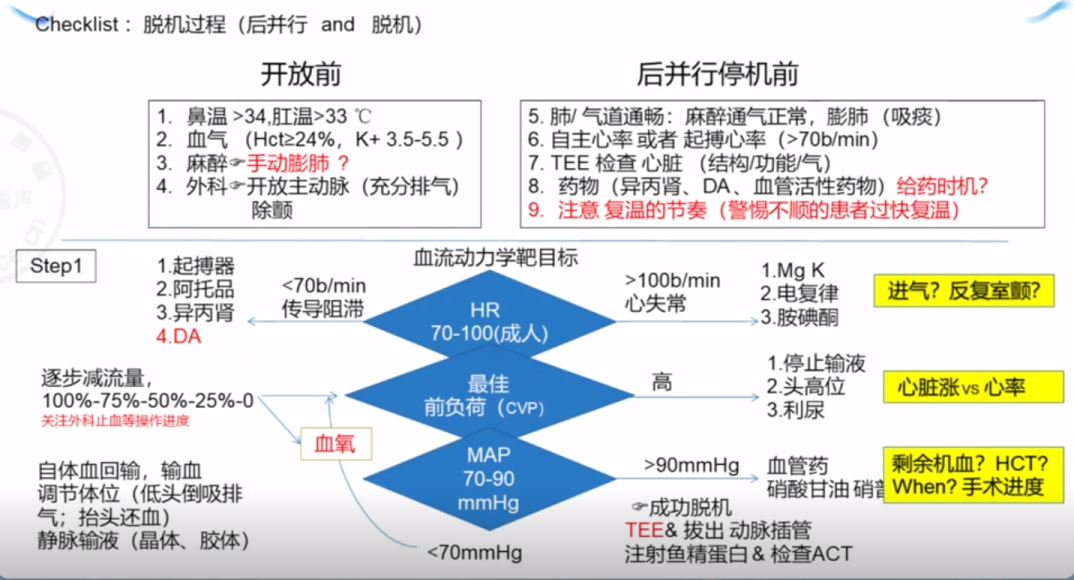 对于成人体外循环综合性血液保护策略,刘淦教授从改良微创体外循环的应用、限制性RBC输血策略、自体血回收与VAVD的应用,自体放血的适时超滤及病例数据分析5大方面,传授了阜外深圳医院的临床工作经验。关于如何处理困难停机,邓丽教授则透过一篇国际文献,细致介绍了发生脱机困难时,医生的通用应对手段。(下附流程图)