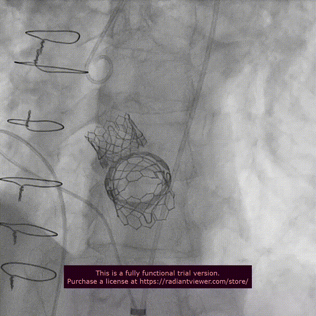 5.主动脉瓣位植入20mm SAPIEN 3瓣膜,球囊体积增加2cc