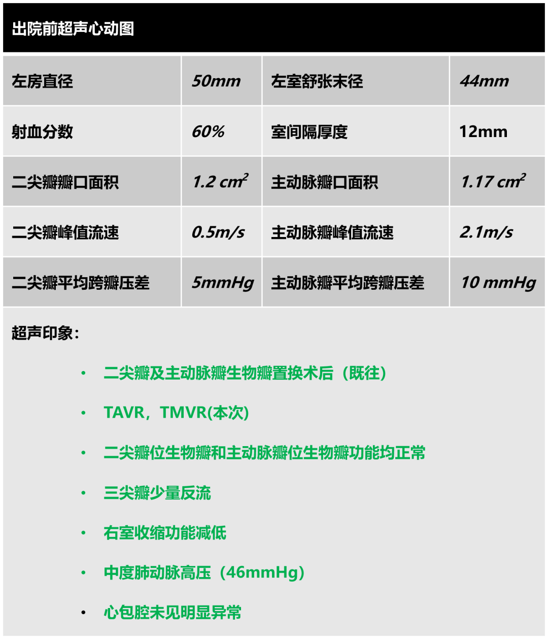 心脏瓣膜病;主动脉瓣生物瓣置换术后;二尖瓣生物瓣置换术后;生物瓣膜置换术后功能衰竭;主动脉瓣重度狭窄;二尖瓣重度狭窄;心律失常;心房颤动;心功能IV级(NYHA分级);肺动脉高压;主动脉粥样硬化;冠状动脉肌桥;高脂血症;甲状腺功能减退;反流性食管炎;胆囊结石;左肾囊肿;肾上腺结节;
