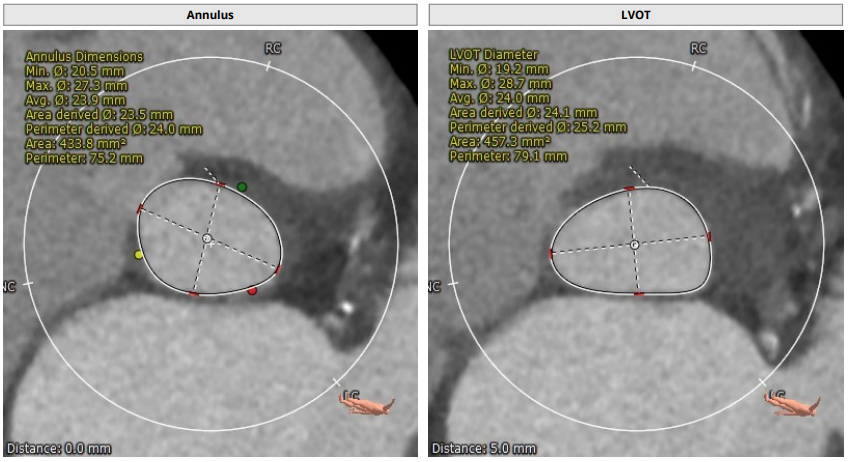 瓣环平均直径:24.0mm,左室流出道平均直径:25.2mm