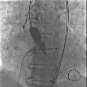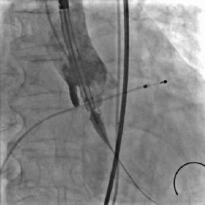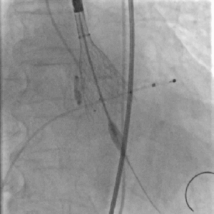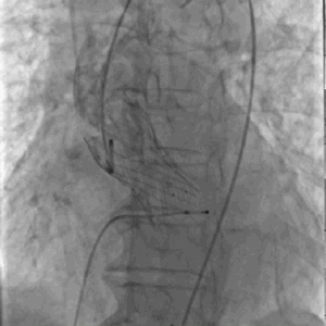 刘杰主任把讨论结果向心血管内科学术带头人韦金儒院长汇报,韦院长指出:尽管患者本身及病情存在诸多尖锐矛盾,但如不解决重度的主动脉瓣狭窄,患者将很快濒临死亡。所以应该把重点放在解决重度主动脉瓣狭窄上,冠脉病变简单处理,建议一站式手术。次日,由刘杰主任主刀,按术前制定的方案进行TAVR手术,并做好了各种应急预案。