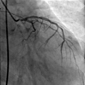 LAD可见:近段70%-80%弥漫性狭窄,远段75%局限性狭窄,向右冠发出极丰富倒枝循环