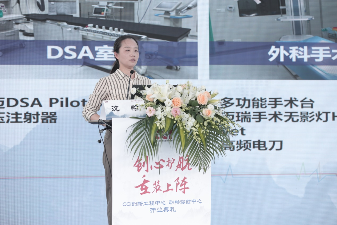 作为“CCI创新工程中心/动物实验中心”的负责人,沈怡博士向参加活动的各位嘉宾介绍了动物实验中心的配套设施和中心概貌。她提到,CCI是国内最大的动物实验中心之一,总建筑面积约3000平方米,中心内包括医工联合实验室、导管室、外科手术室等多功能区域,且配备有DSA、IVUS、OCT、FFR、QFR等先进影像学设备,核心服务项目涵盖临床前大动物实验室、实验室检测等,未来将立足创新原点汇聚医工资源,竭力打造创新医疗器械生态圈。