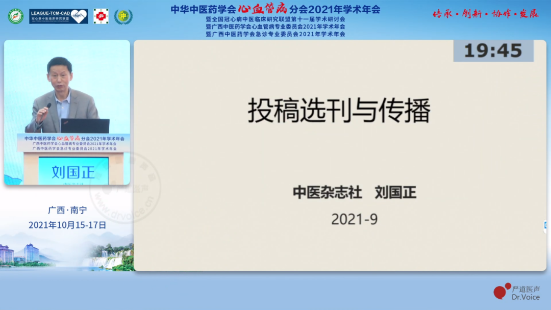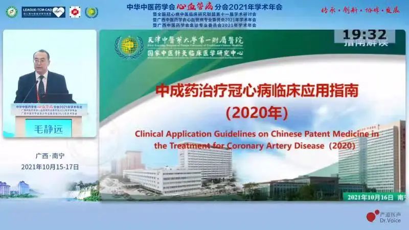 开幕式结束后进入主题论坛,毛静远教授对《中成药治疗冠心病的临床应用指南(2020年)》进行了解读,丁书文教授带来《我与房颤抗争10年》的经验分享,吴宗贵教授就《中成药治疗高血压临床应用指南》进行解读,安冬青教授介绍了《冠脉微循环障碍的中医药治疗》,刘国正教授带来了《投稿选刊与传播》,王显教授针对“稳定性冠心病还需要PCI吗?”进行讲解分享,张健教授梳理总结《心力衰竭治疗中西药物进展 2020-2021》,张敏州教授带来了《急性心肌梗死中西医结合诊疗指南》的实践与推广。