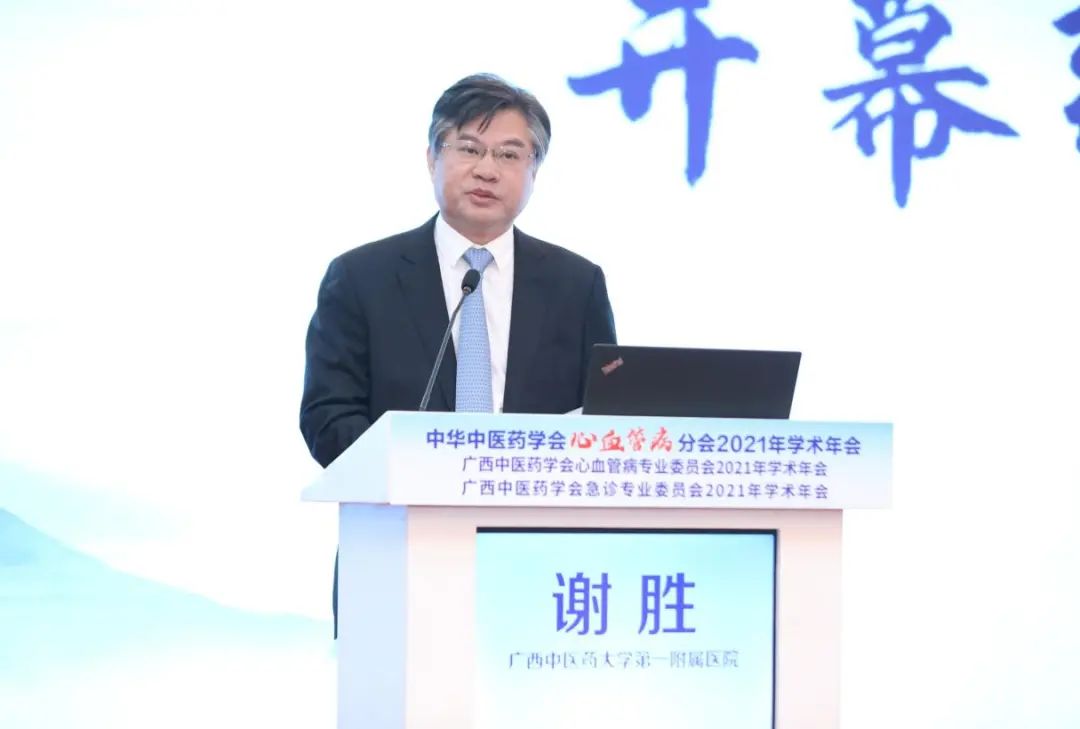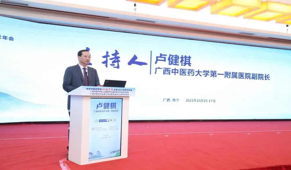 本次会议以“传承、创新、协作、发展”为主题,采用线上、线下相结合的形式召开,大会开幕式由广西中医药大学第一附属医院副院长卢健棋教授主持。广西中医药大学第一附属医院院长谢胜教授,天津中医药大学第一附属医院院长、中华中医药学会心血管病分会主任委员毛静远教授先后致欢迎辞。天津中医药大学名誉校长张伯礼院士、广西壮族自治区人民代表大会常务委员会刘有明副主任、中华中医药学会王国辰秘书长、广西中医药大学庞宇舟副书记、广西壮族自治区中医药管理局医政处潘霜处长、广西中医药学会黄波夫秘书长分别讲话。