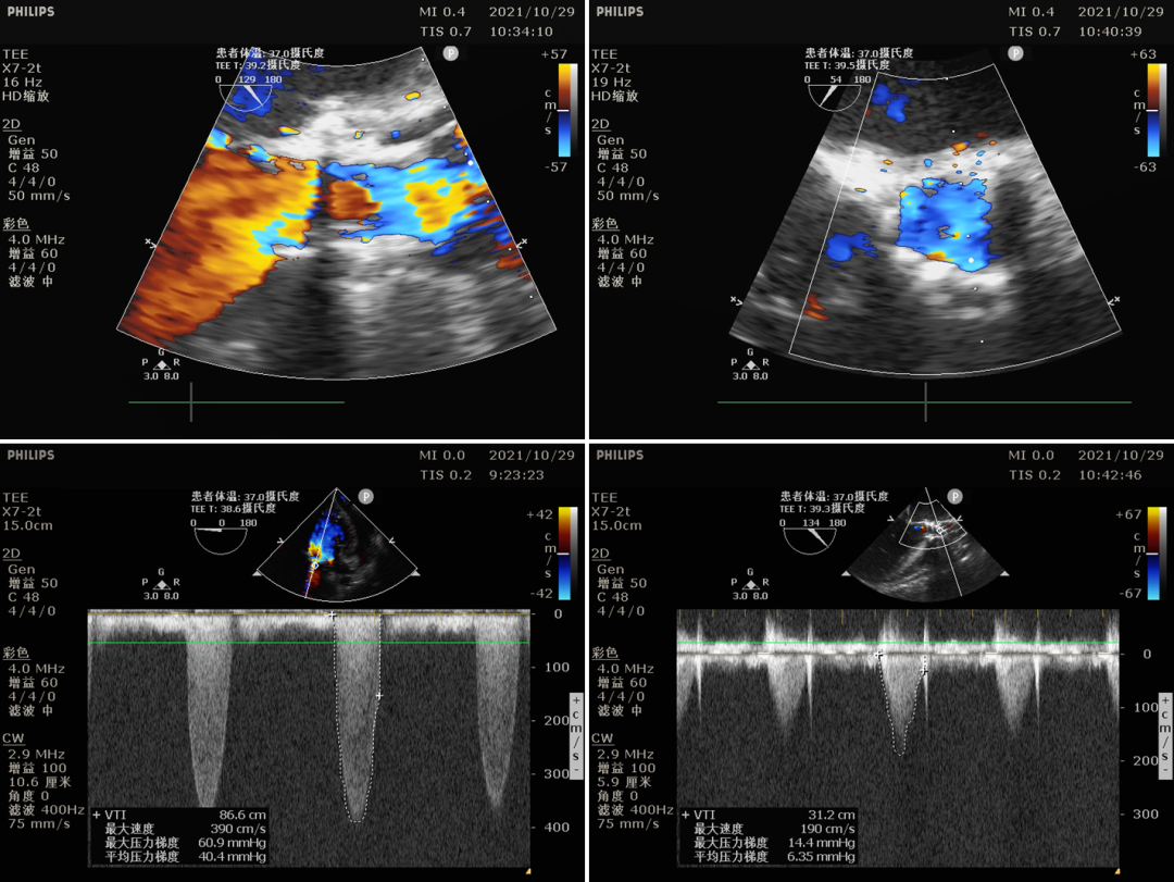 瓣膜工作状态良好,极微量瓣周漏,血流动力学有效改善
