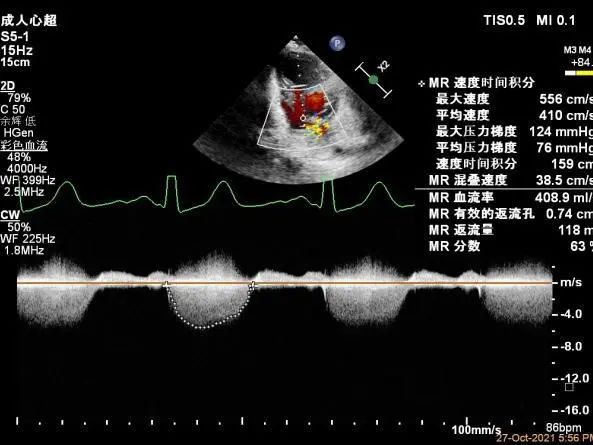 Bicom:MR(重度),返流束宽12.5mm,返流面积11.4cm²