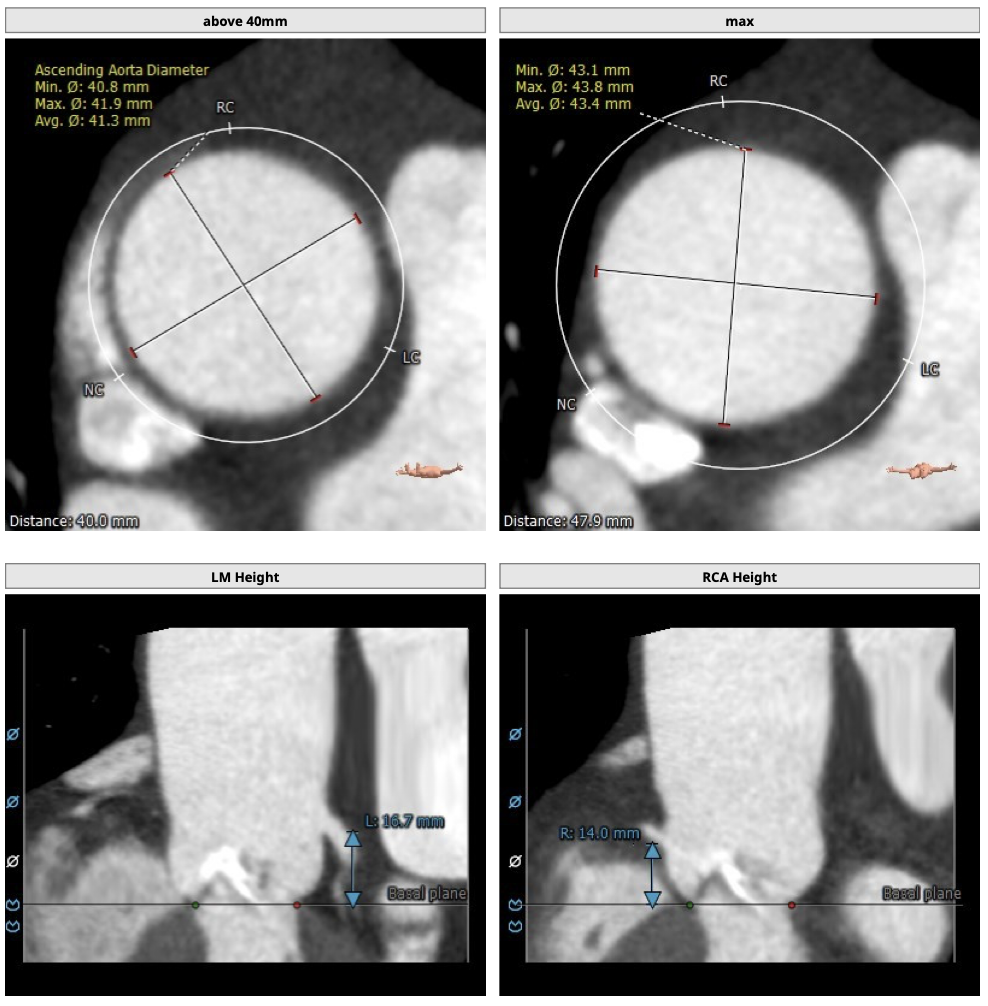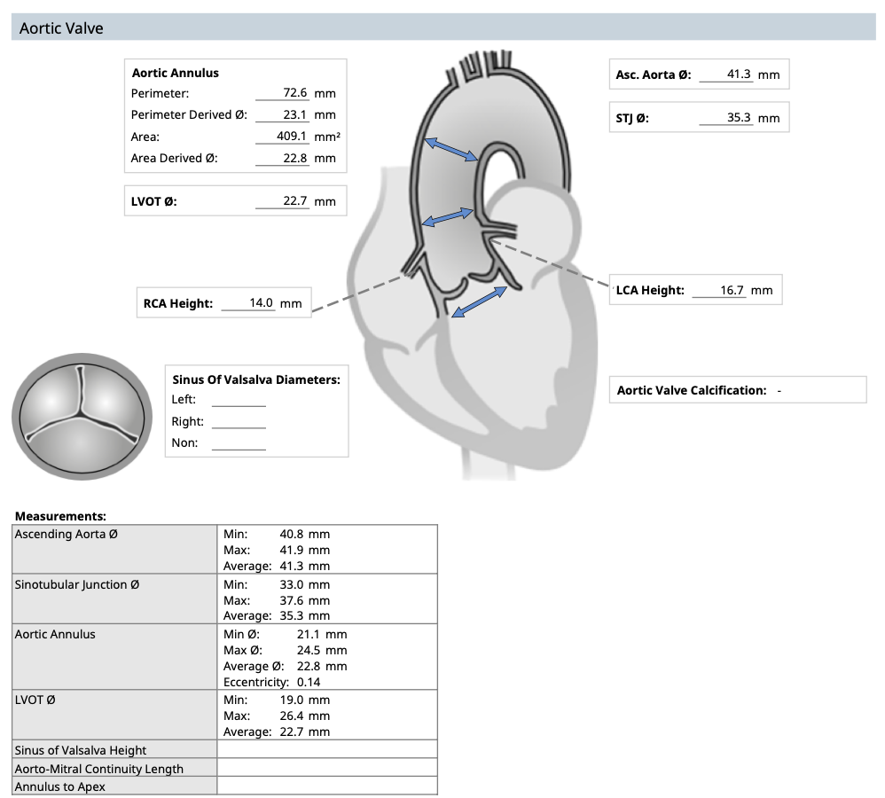 患者为TYPE0型二叶瓣,轻中度钙化,瓣叶可见增厚,冠脉高度可,法式窦结构大,左室大小尚可,心肌肥厚,升主动脉可见增宽。