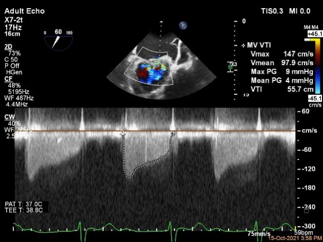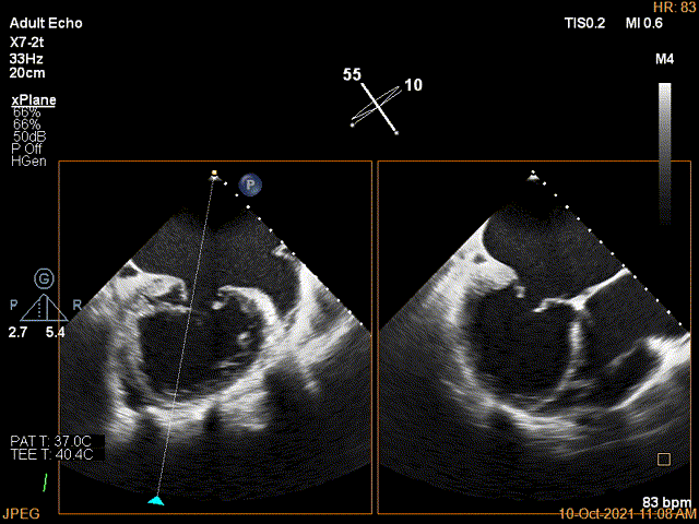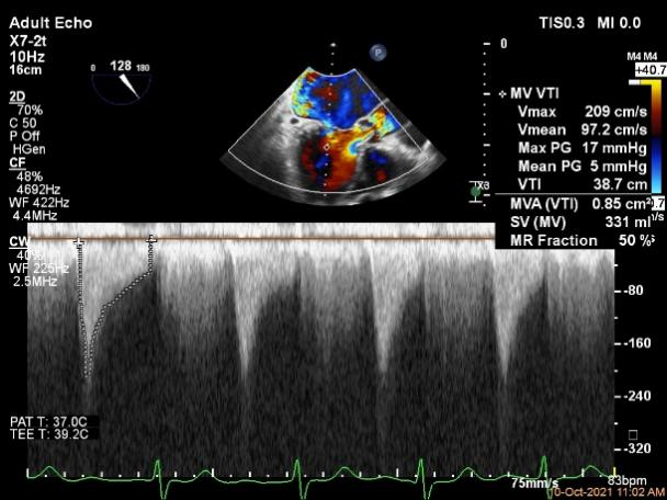 第二个夹子放置后二尖瓣口平均跨瓣压差:4mmHg