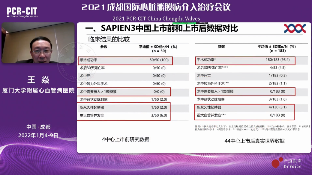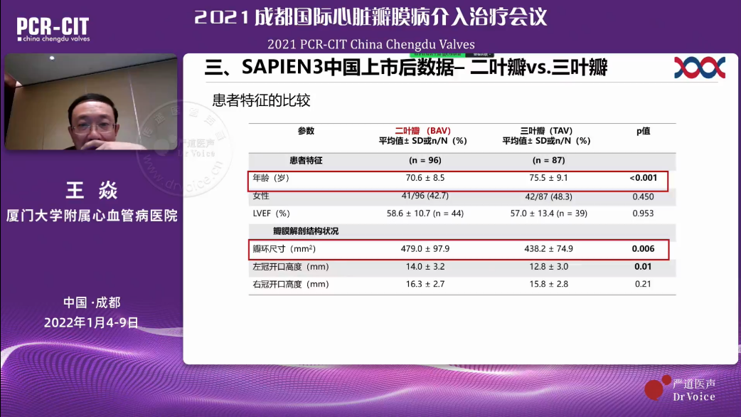 经导管主动脉瓣置换系统SAPIEN 3是目前使用最广泛、临床证据最丰富的瓣膜之一,2020年6月正式在中国国家药品监督管理局NMPA注册上市。2021成都国际心脏瓣膜病介入治疗会议(PCRCCV 2021)举办期间,厦门大学附属心血管病医院王焱教授就中国主动脉瓣狭窄患者植入SAPIEN 3瓣膜的真实世界临床数据进行了解读。