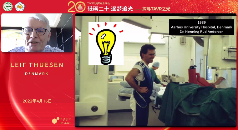 活动现场,丹麦Leif Thuesen教授作为Andersen教授的好朋友,在线上带领大家回顾了1988-2002年TAVR“史前时代”的故事,揭秘这段从Andersen教授灵光一现的奇思妙想,到孤勇探索研发出第一款动物球囊扩张瓣膜,再到研究结果不被认可频频受挫的在“黑暗”中默默前行的历史岁月。