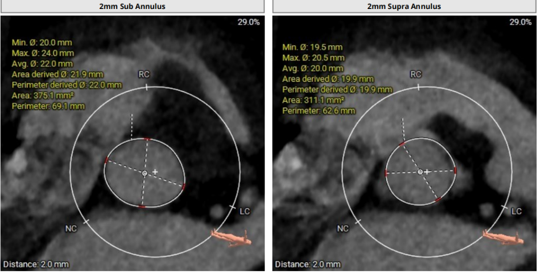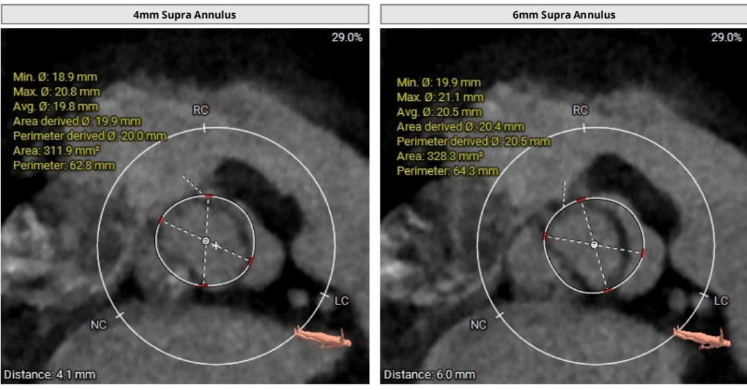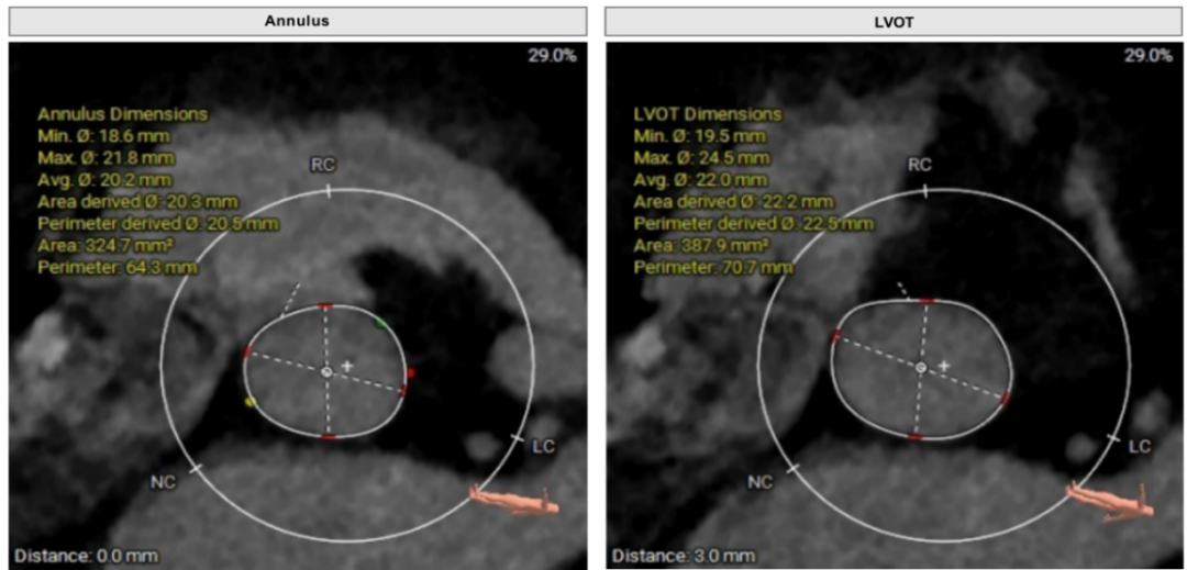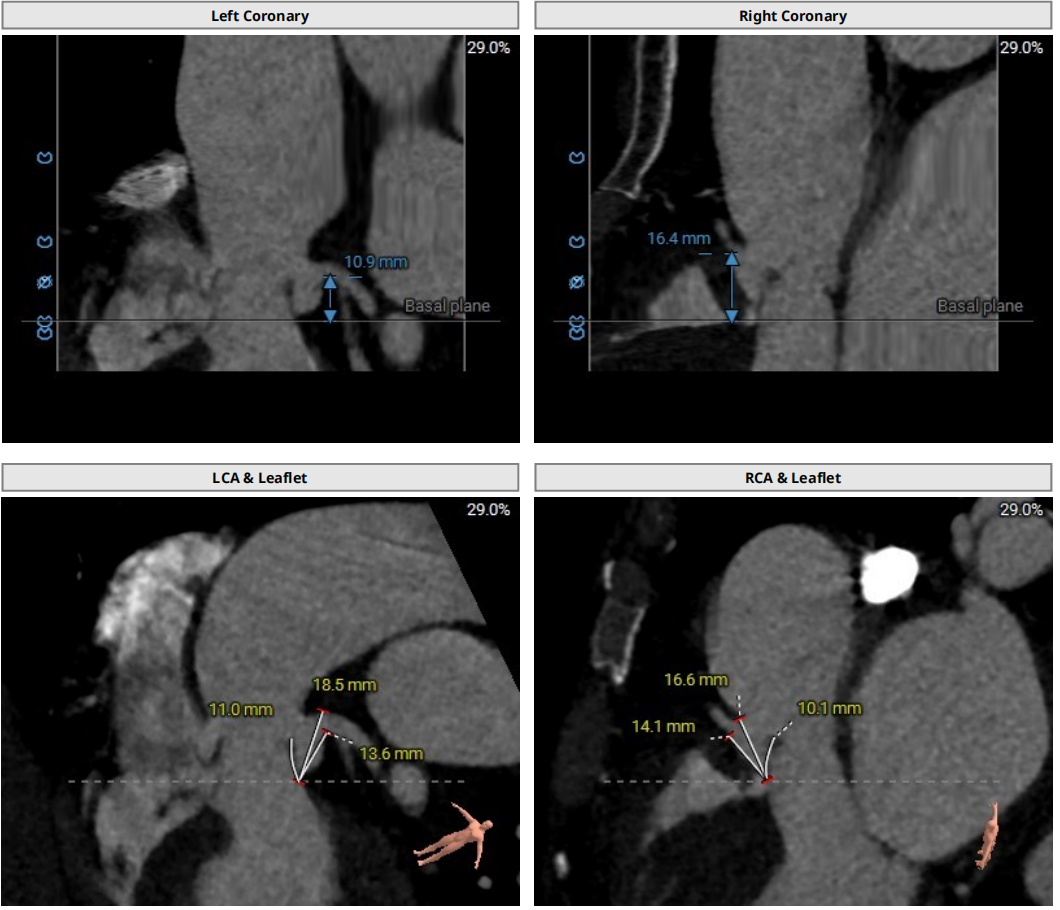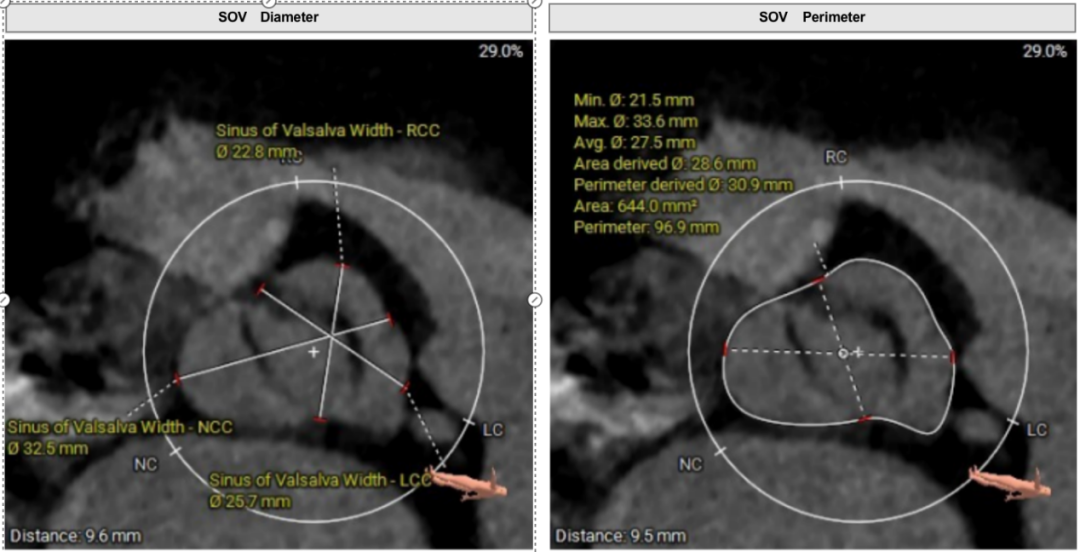 双侧冠脉开口高度良好,瓣叶长度适中,综合瓦氏窦及窦管交界内径,冠脉风险较低。