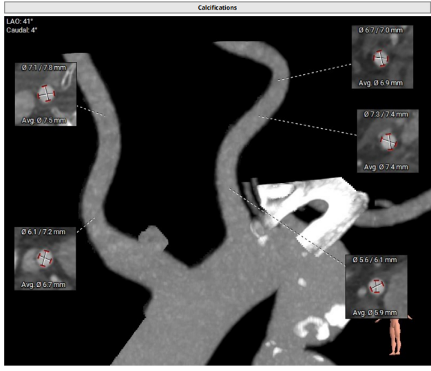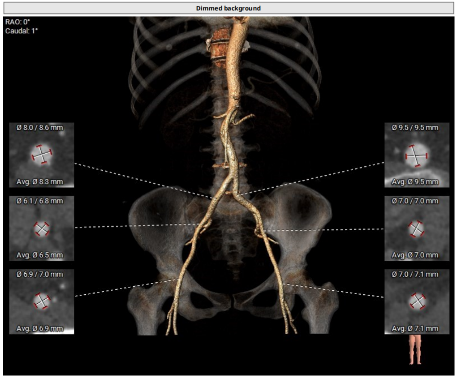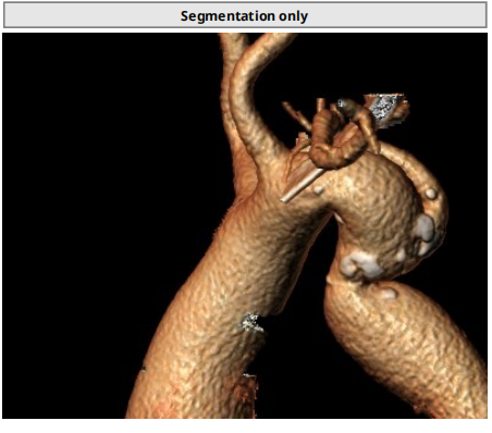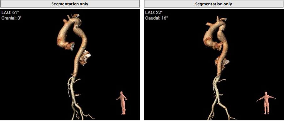 外周入路血管条件良好,内径可,无明显钙化;主动脉弓降主动脉出有明显狭窄和弯折,弓缩窄最窄处13mm,输送系统过弓可能有明显的困难,替代选择可以考虑颈动脉入路或者上长鞘拉直弯折。