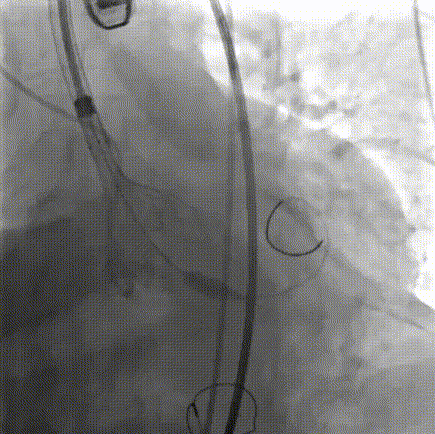 17. 后扩后见瓣周漏改善明显,导管测压得压差为0mmHg,超声测量血流动力学指标良好。