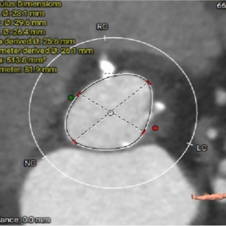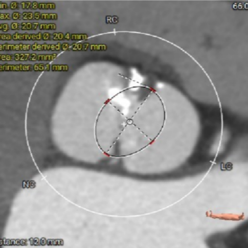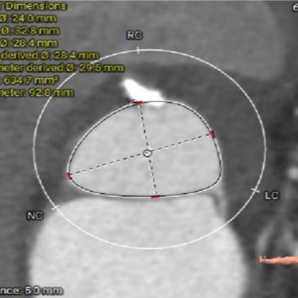 · 冠脉开口高度可,右冠纤细,冠脉未见明显钙化,结合瓦氏窦及STJ尺寸预估,冠脉风险适中,建议术中密切关注左冠灌注情况。