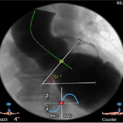 · 术前考虑右侧股动脉为主入路,左侧为辅助入路。
