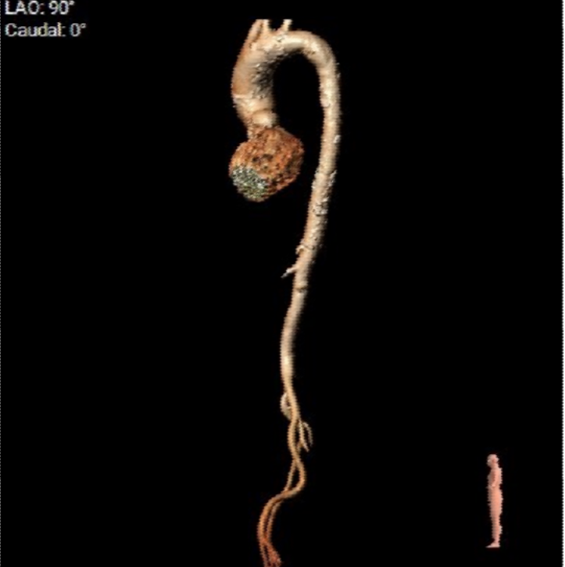 · 主动脉瓣环水平夹角51度,非横位心,主动脉弓宽度、角度尚可,弓部存在散在钙化;