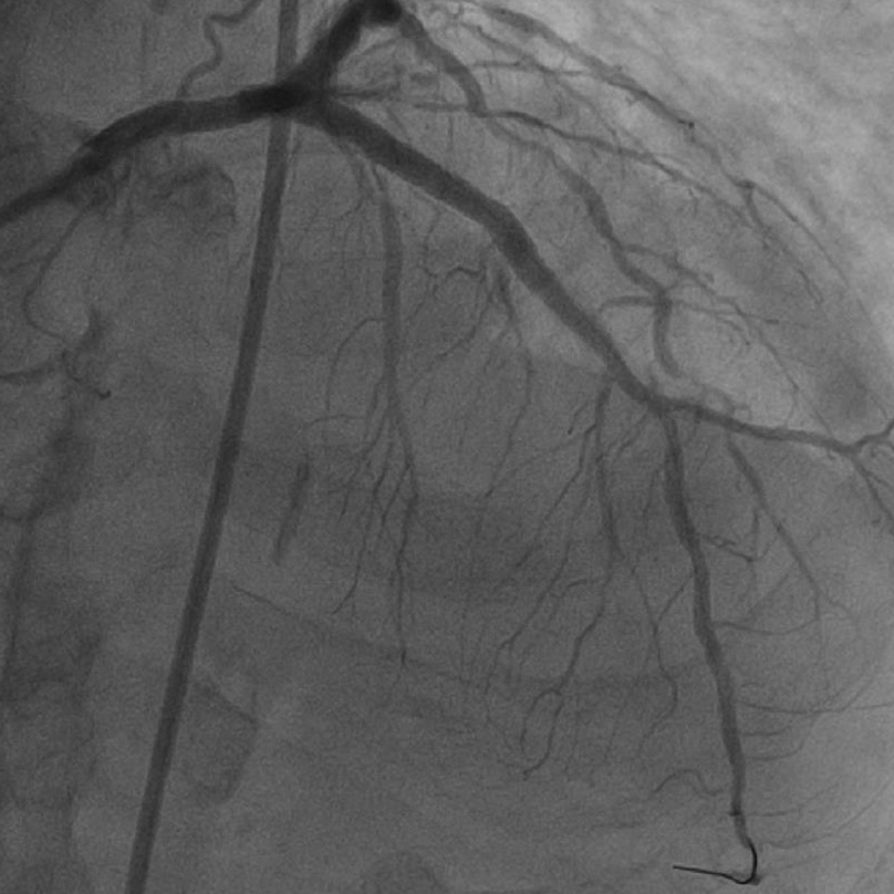 心电图提示广泛ST-T改变。经加强透析、抗感染等治疗改善心衰后,行冠脉造影提示三支病变,冠脉严重钙化,左前降支-左主干最严重,显示多处弥漫狭窄、钙化,前降支中段狭窄80%,左主干根部分叉狭窄70%狭窄。