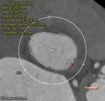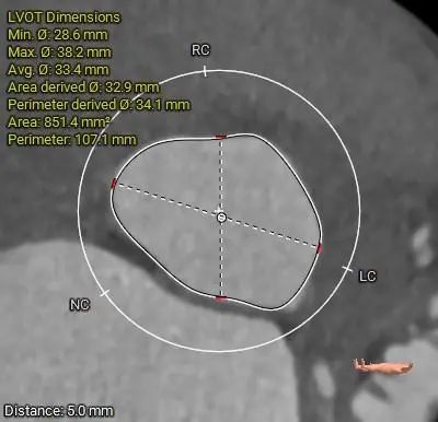 2.主动脉瓣瓣环周长100.1mm,平均周长径31.9mm。