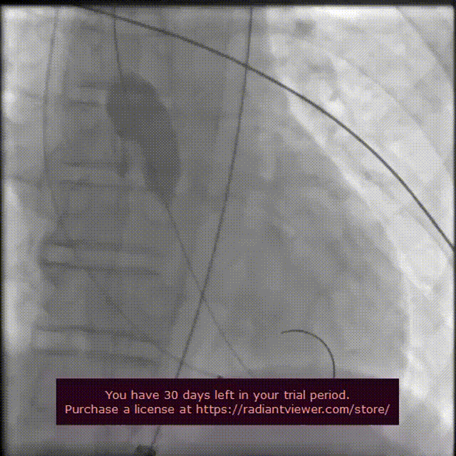 3.使用23mm球囊预扩,预装AV31瓣膜,瓣环下零位开始释放。