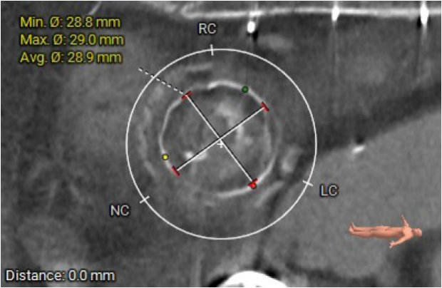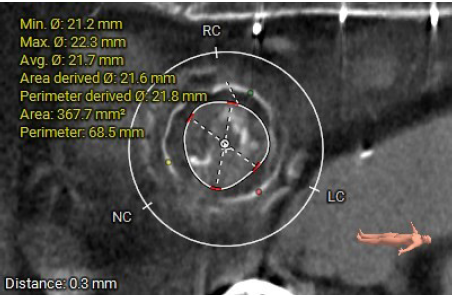无论开展任何瓣位的瓣中瓣手术前,都应先明确原外科生物瓣的类型和型号,不同类型的外科生物瓣都具有不一样的透视下特征,如果透视性差的情况下,术中需要结合TEE协助定位。同样,原外科生物瓣的尺寸也对介入瓣尺寸的选择至关重要。