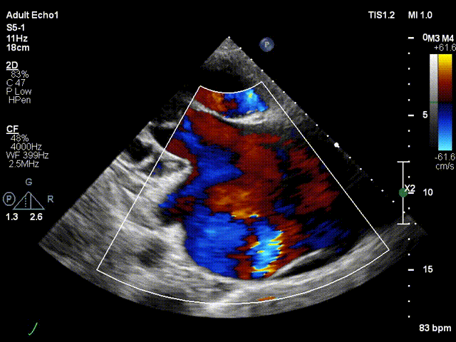 巨量三尖瓣反流 [平均缩流颈宽度2.37 EROA 2.01 返流量140ml]