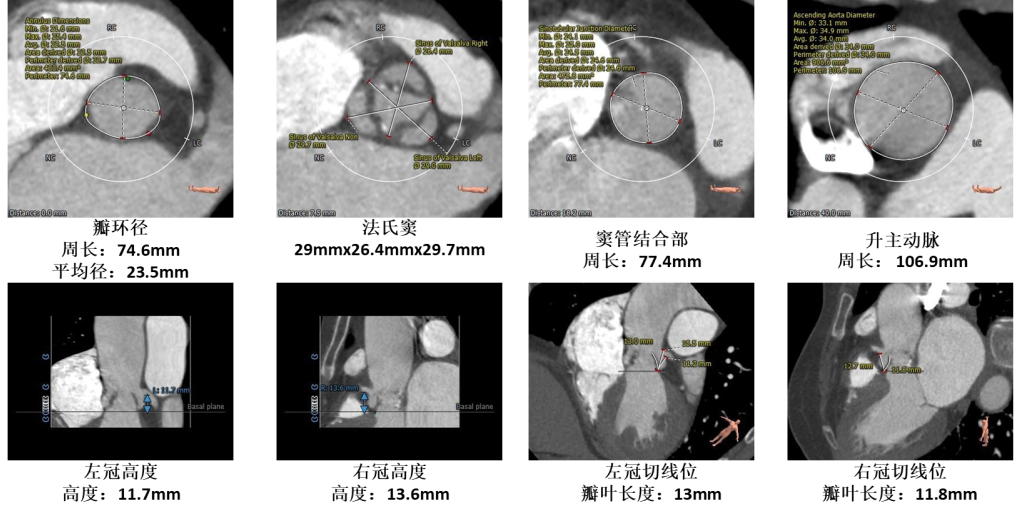 1.主动脉瓣瓣环周长74.6mm,平均径23.5mm。