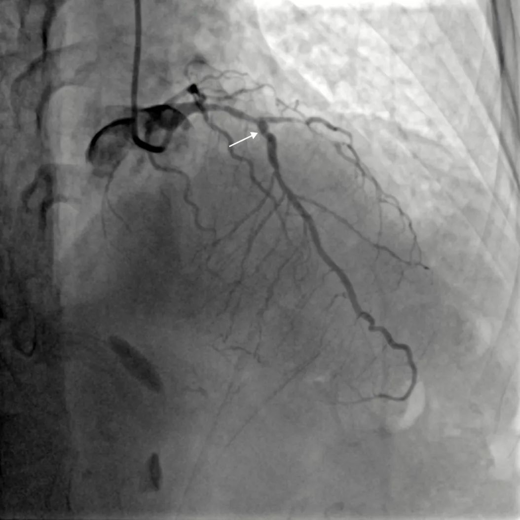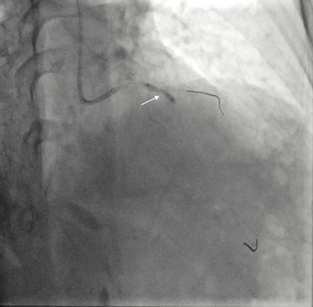 手术耗时约40分钟,并顺利完成前降支支架植入。术后患者症状缓解,并于近日出院。