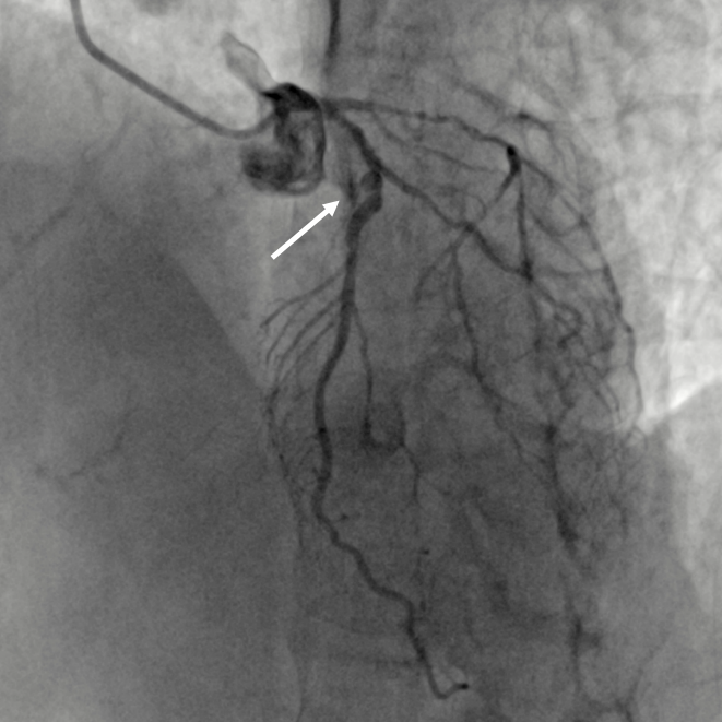 前降支造影:严重钙化狭窄病变处呈“小波浪”迂曲