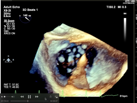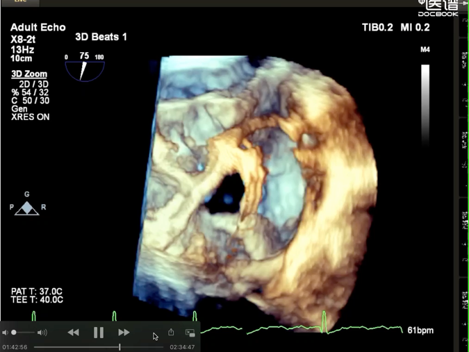 经过术前分析,患者的手术具有很大的挑战。不仅有曾经开胸手术史,右冠的整个后瓣环区有一个支架,给手术带来了很大的难度。经过潘湘斌教授心脏团队的讨论,决定在后瓣靠近隔瓣的位置,植入K-Clip®,进行后隔瓣环的缩环成形,以期改善反流。