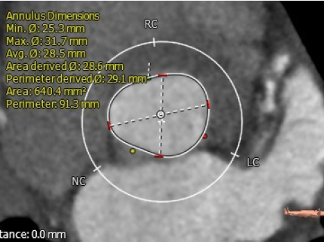 2.主动脉瓣环周长折算直径约29.1mm;