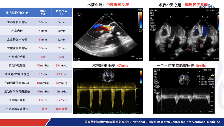 手术进行很顺利,器械操作顺畅。术后造影显示,瓣膜工作状态良好,无明显瓣周漏及跨瓣压差。冠脉无阻塞,无传导阻滞。患者顺利转回监护室苏醒。手术当天晚上开始开放饮食。术后第三天即转至普通病房,开始下床活动,同期开始进行计划性术后心脏康复锻炼。