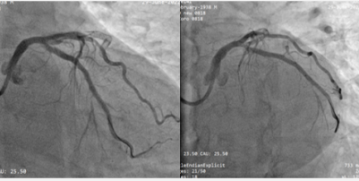 首先行LCX介入治疗,植入1枚支架。支架术后。(如图3)