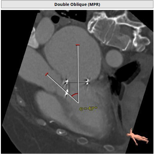 2. AV-MV double S curve :RAO 42°/ CAU 47°,此角度为二尖瓣主动脉瓣最佳观察位;