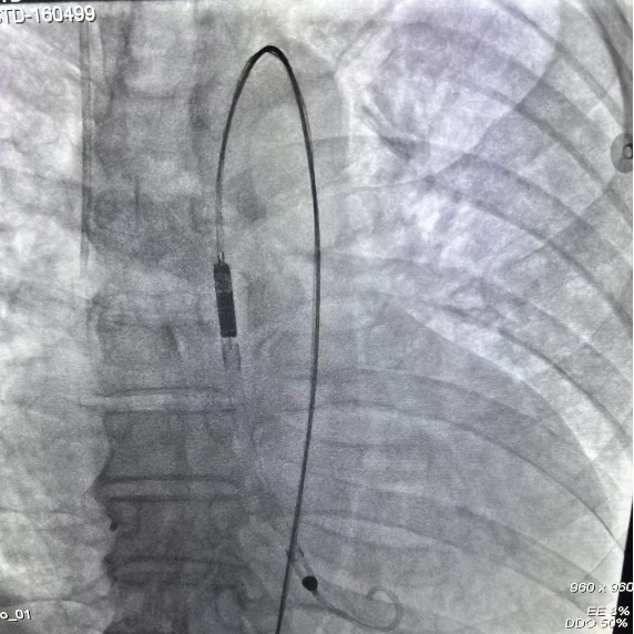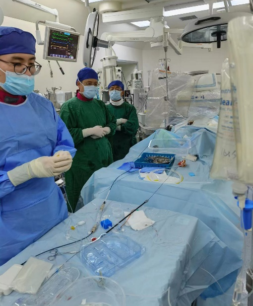 董念国教授团队经全方面评估和多学科会诊后,决定为患者实施经皮心室辅助装置植入手术,改善患者血流动力学。手术采用微创介入方式,顺利经股动脉入路,沿导丝将泵血装置送入左心室,部分替代心脏泵血功能,维持患者血液循环。手术过程顺利,患者平稳转至ICU。