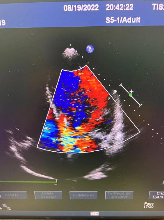 本例患者为59岁男性,因终末期心力衰竭就诊于武汉协和医院心脏大血管外科。患者射血分数低,伴随着因心衰导致的多种并发症,身体情况极差,在最大限度的内科治疗情况下,心功能依然难以改善。基于此,患者接受了心脏移植前评估,在院等待心脏移植。在等待移植期间,患者出现急性心衰。