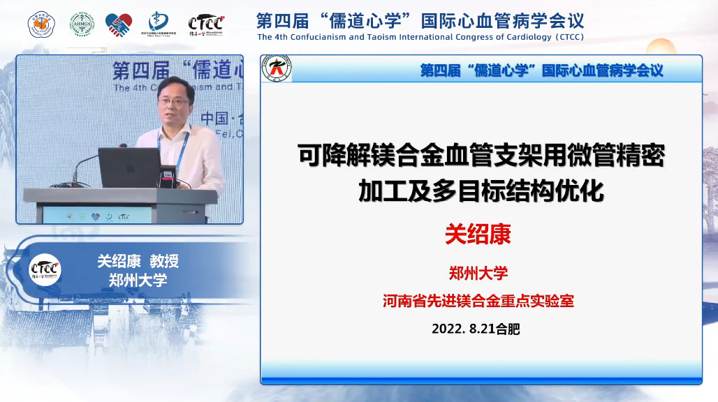 郑州大学副校长关绍康教授是国家材料学顶尖专家,专注于镁合金材料的研究,他向我们介绍了“可降解镁合金血管微管加工及支架结构设计的研究进展”,这也是目前可吸收支架研究的热点材料之一:1)微管加工是最大难点,采用特种加工技术制备壁厚为0.135mm的精密微管;2)采取多目标优化设计,能够快速设计范围内优化支架结构参数,以提高支架性能;3)借助生物分子,化学修饰和降解调节剂等制备促进内皮化和修复再生的专属涂层,有助于镁合金血管支架早日进入临床应用。医工交叉就是要让医生的临床难点和工程师的优良设计有效的结合在一起,但是能把大学中研究室中深厚的理论研究应用到临床并且转化成产品才是更深一步的医工结合,关教授的研究内容无疑让众多的研发厂家看到了材料学进步的前景,也引起了投资人的密切关注。