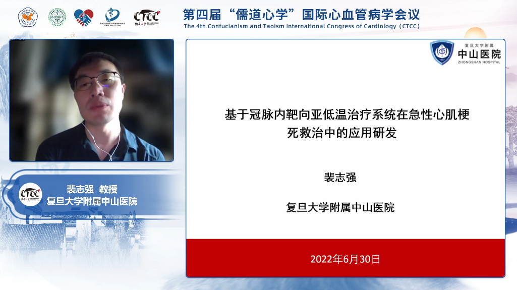 上海中山医院的裴志强教授基于临床实践,传授“基于冠脉内靶向亚低温治疗系统的研发心得”。他提出急性心肌梗死缺血再灌注(MIRI)需要一种新的治疗方式,亚低温治疗对MIRI改善有坚实的理论依据,目前的亚低温实现方式在AMI应用有其明显局限性。研发一种可以符合急性心肌梗死急诊PCI救治流程、快速实现亚低温、无全身副作用、不增加心脏负荷的冠脉内低温系统,为MIRI治疗中提供新的策略。裴志强教授基于临床实践提出的治疗创新,有着他山之石可以攻玉的感觉,相当于把全身用的冰毯治疗超选择性的进入了冠状动脉,这样靶向性更强,治疗更有效和副作用更低,更符合目前精准医疗的大方向。