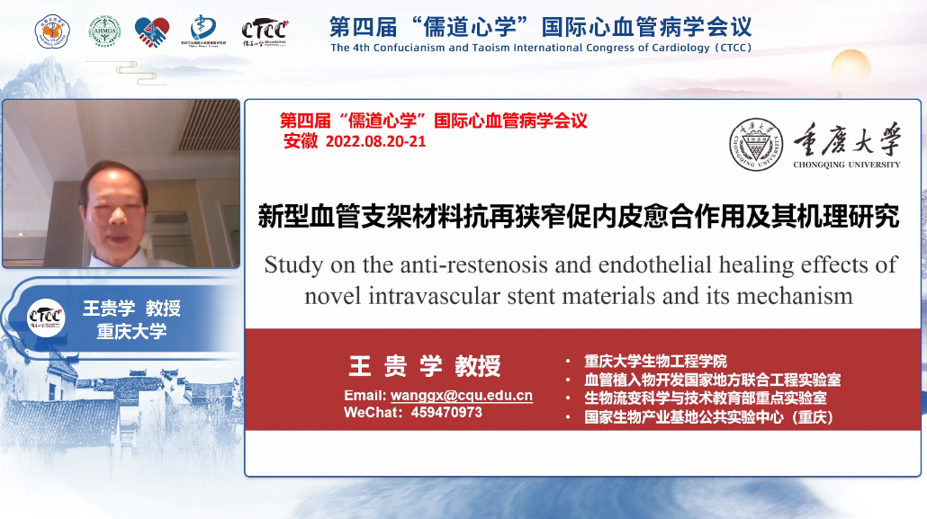 重庆大学生物工程学院院长王贵学教授也是一个材料学的顶尖专家,他分享了 “新型血管支架材料抗再狭窄促内皮愈合作用及其机理研究”,列举了利用非对称双面涂层技术、低温等离子体表面改性技术、层层自组装技术等提高材料的生物相容性、促进内皮愈合抑制再狭窄作用,并以药物洗脱支架、细胞涂层支架、聚乳酸支架为例阐述了血管内皮损伤修复的血流动力学机理。新型可吸收支架的设计离不开材料学的迭代进步,基础材料取得的不断进展才能在生产环节获得放大效应,这种新的发现无疑会让观看的投资方眼前一亮。