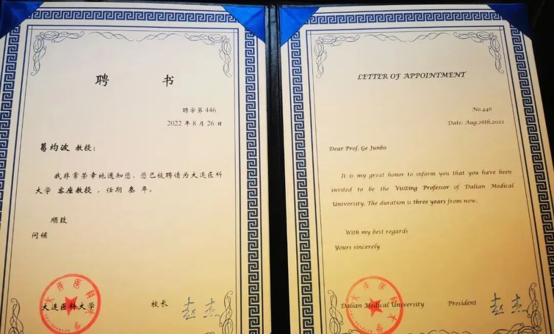 大连医科大学赵杰校长和大连医科大学附属第二医院刘志宇院长向葛均波院士颁发聘书(聘期三年),相信必将极大提升大连地区心血管病的诊治水平,造福更多患者。