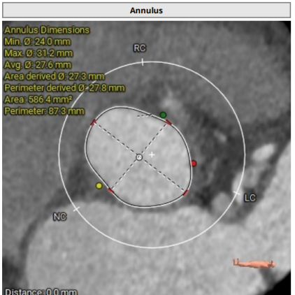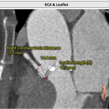 ● 左右冠脉开口高度尚可,切线位左右冠瓣叶长度>冠脉开口到瓣叶附着缘距离;