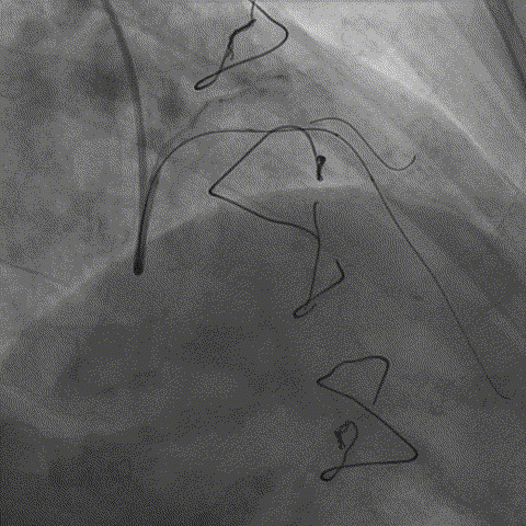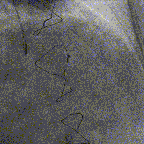 之前对手术指引导管估计有误,选择BL3.0支撑力不够,改换EBU3.5,导丝过病变但球囊过不去,手术期间EBU3.5不能下入窦底,用导引延长导管引导进入窦底,开始选用1.0*10到2.5*15升级球囊扩张病变。